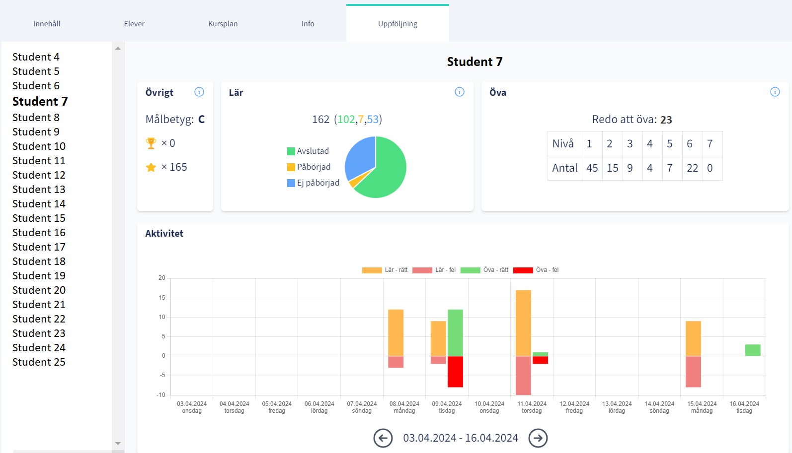 Få en överblick under lektionen hur det går för varje elev just för stunden och i kursen i övrigt så att du bättre kan rikta din uppmärksamhet där det gör som störst skillnad.