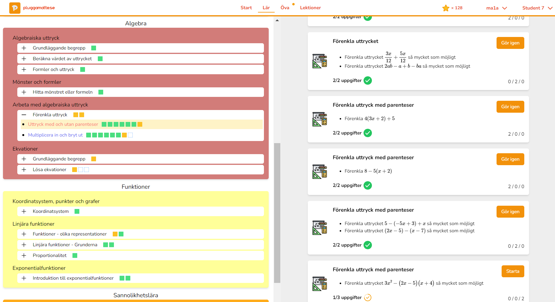 Baserad på forskning och beprövade minnestekniker som fungerar. Data från pilotprojektet 23/24 visar tydligt att Pluggamatte-metoden fungerar. Vi följde en grupp på 55 elever som gick FS-programmet på gymnasiet och läste kursen matematik 1A med Pluggamatte hela läsåret. Pluggamatte-metoden är designad för att eleverna ska lära sig så mycket som möjligt och behålla kunskaperna med så liten total arbetsinsats som möjligt.
